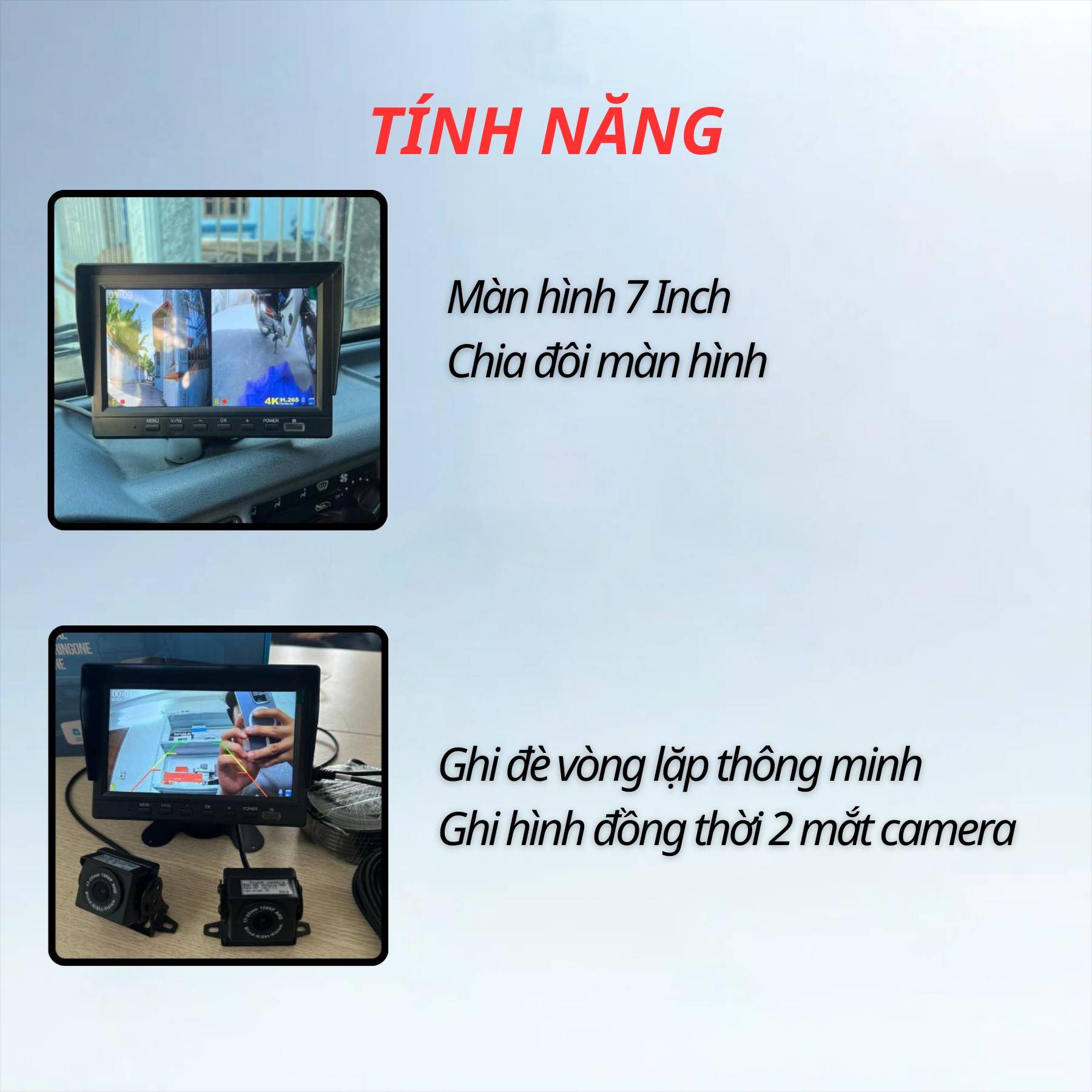 Sản phẩm này phù hợp với nhu cầu của những người muốn ghi lại hành trình di chuyển, cải thiện an toàn khi lái xe và hỗ trợ tối ưu khi lùi xe. Bạn cần thêm thông tin hoặc hỗ trợ đặt hàng?